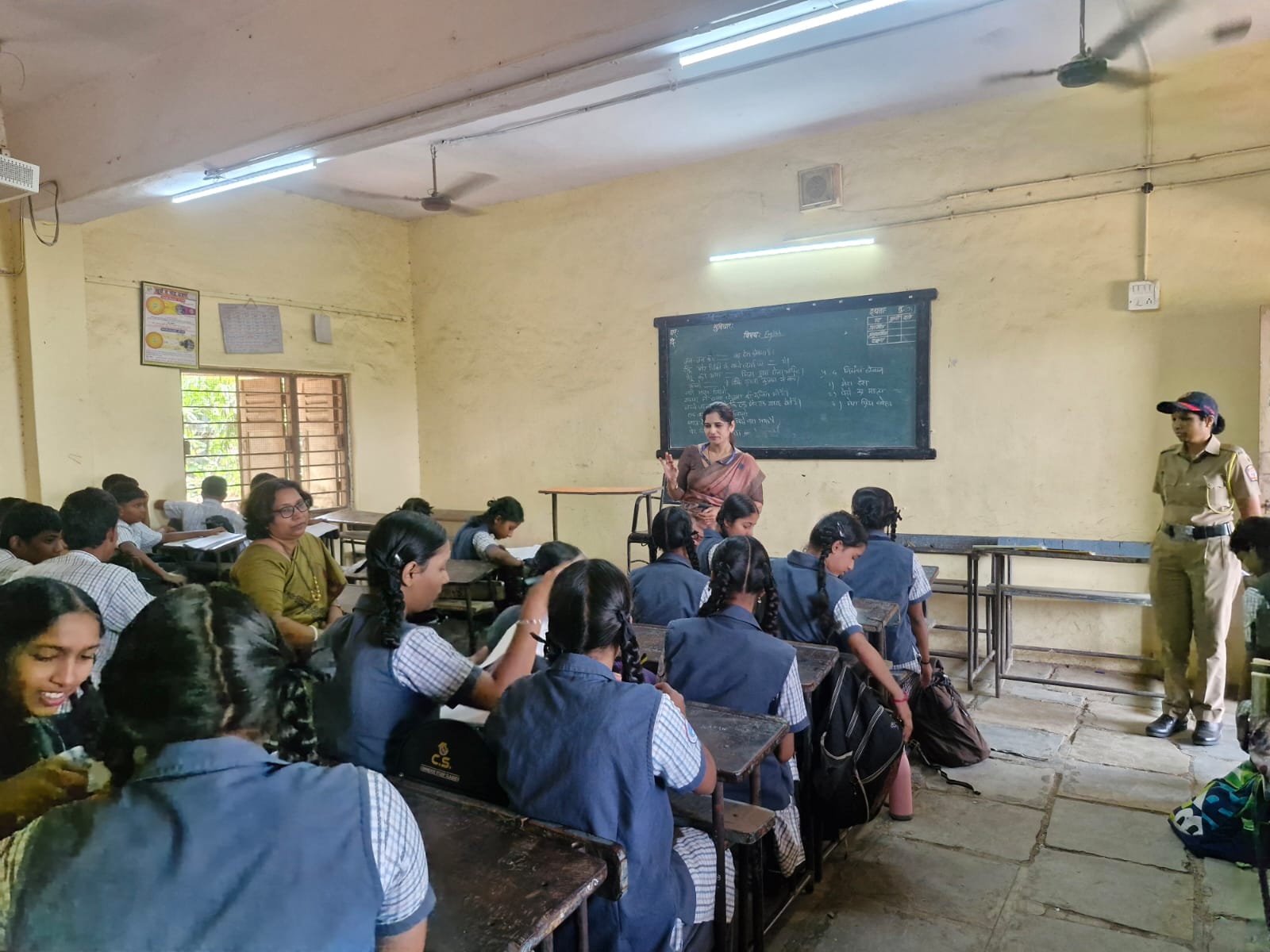 सदर वेळी 2 वर्गशिक्षिका व इयत्ता आठवी ते नववी चे विद्यार्थी.